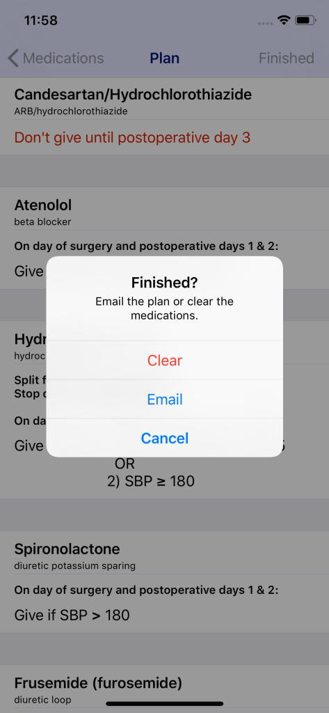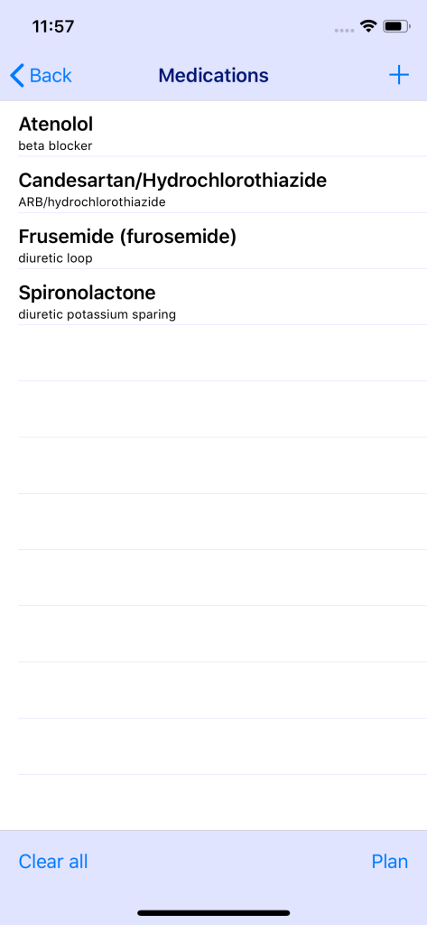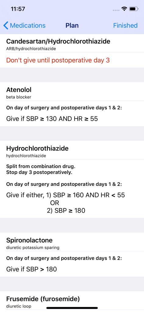 For the ‘hypotension avoidance strategy’ of the trial, research staff can enter the patient’s medications (generic or trade names). The app has a library of 379 medications. Press ‘Plan’ and a plan with simple instructions is developed.